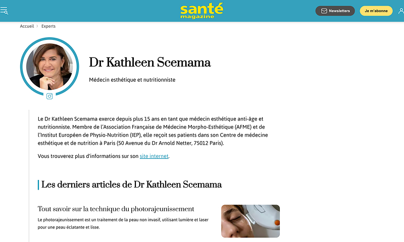 Le Dr Scemama est régulièrement citée dans la presse écrite pour son expertise médicale. Découvrez ses parutions.